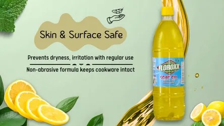 Floroxx Soap Oil is formulated with an advanced cleaning formula that easily breaks down stubborn grease, oil stains, and accumulated dirt. Whether it is kitchen spills, oily surfaces, or sticky residues, this floroxx soap oil multipurpose cleaner liquid penetrates deep into the surface and removes impurities without requiring excessive scrubbing.